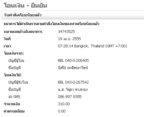ไม่เป็นไรค่ะ โอนเงินให้แล้วนะคะ ที่อยู่เดิมค่ะ